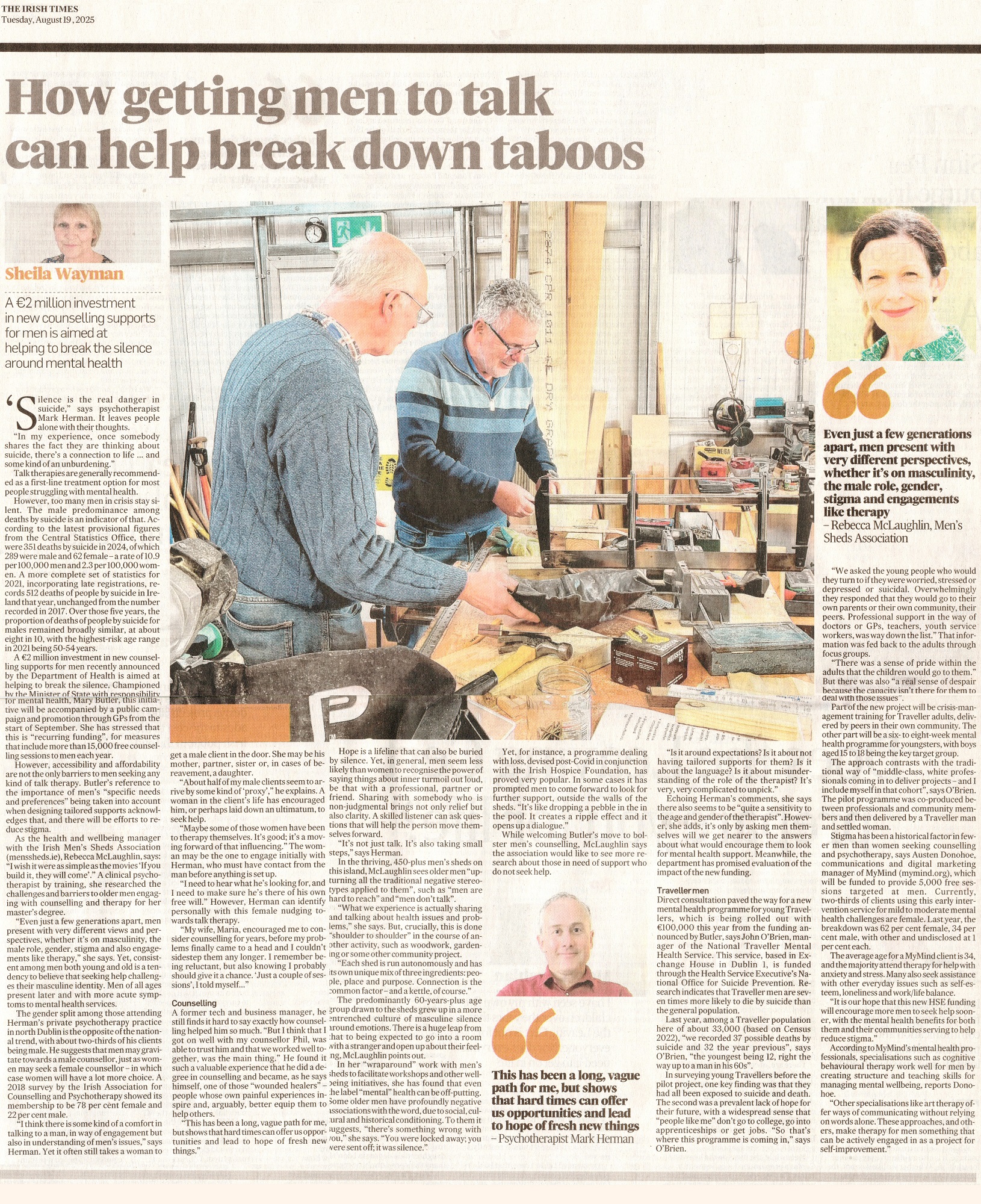 – I recently featured in an Irish Times article, speaking on therapy and men’s mental health.