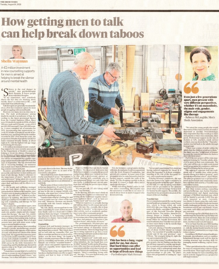 I recently featured in an Irish Times article, speaking on therapy and men’s mental health.